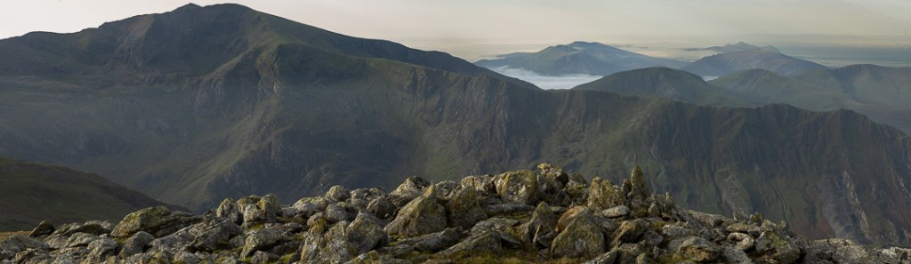 Dawn Haze from Glyder Fawr October 2023 – 28mm F11 2 Shot Panoramic